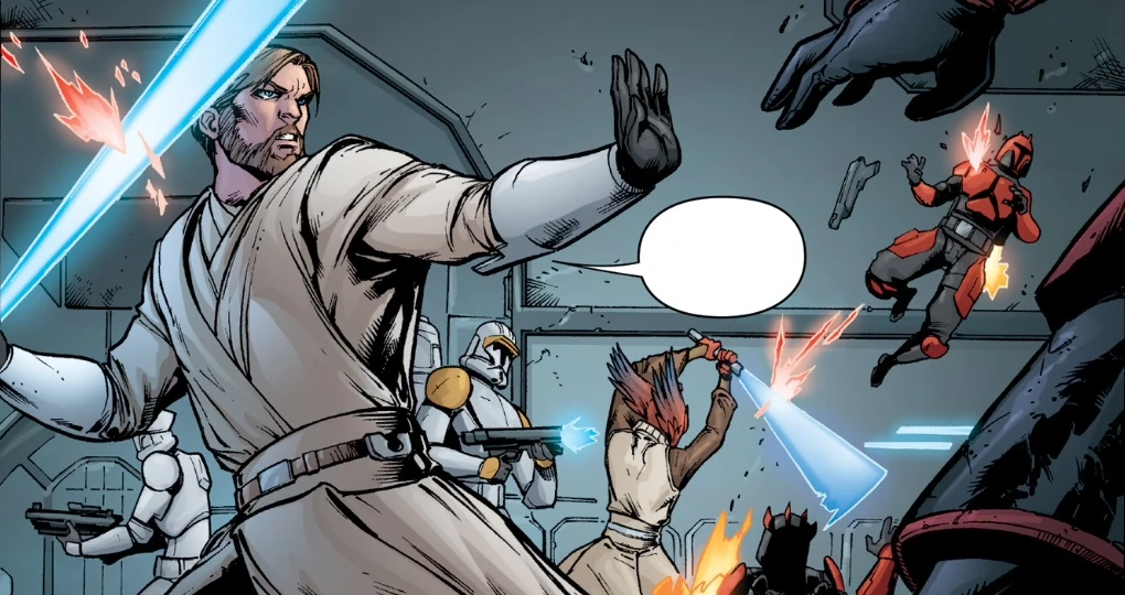 Reinforcements provided by Windu and Secura soon joined the battle, and a duel ensued: Windu and Secura dueled Maul while Kenobi and Tiplee battled Dooku. Using Force lightning to gain the upper hand, Dooku killed Tiplee, much to Kenobi's distress. Mandalorian commanders Gar Saxon and Rook Kast fired a rocket at Windu and Secura, knocking them unconscious and allowing Maul and Dooku to escape aboard a Gauntlet fighter.