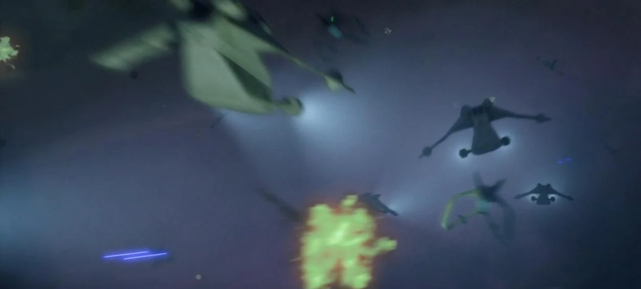 The Separatist fleet defends the Supply Ship over Umbara.