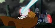 On Muunilinst, one of Obi-Wan Kenobi's clone troopers in charge of the artillery reports that Durge and his swoop-mounted IG lancer droids are tearing through their Self-Propelled Heavy Artillery tanks. Kenobi orders his troops to mount up, and an army of clones jump onto their speeder bikes to intercept the droids. The two bands of swoop riders enter into a mass joust, both clone and droid alike being impaled or thrown aside. During the joust, Obi-Wan and Durge both slay many of their respective enemies. During a time in which both sides have great casualties, the two commanders engage in personal combat.