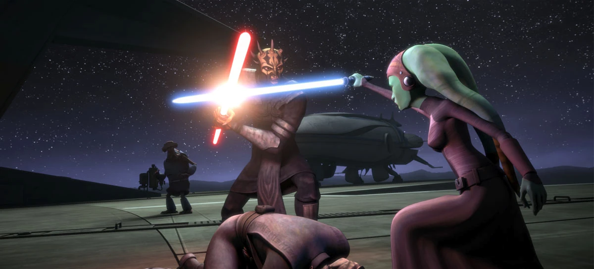 Ertay and another Jedi were on the planet of Stobar when they confronted Savage Opress and Darth Maul. Ertay and the other Jedi dueled with the dreaded brothers, but both Jedi proved to be no match for the power of the Sith brothers, and she was killed when Maul stabbed her through the back with his lightsaber.