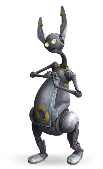 LEP servant droids, nicknamed rabbit droids, were a model of droid designed for small tasks, such as serving food or carrying luggage. They were used by both the Confederacy of Independent Systems and the Galactic Republic during the Clone Wars. Rabbit droids were originally designed for childcare, but after its flaws in the category damaged their manufacturer's image, they were eventually sold as servants.