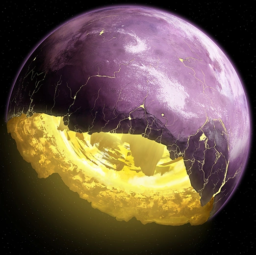 Lola Sayu was a planet far in the Outer Rim. For unknown reasons, a large portion of the planet was exposed, leaving a sea of yellow magma revealed and a chain of debris to float in space around the planet.