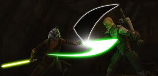 Pre Vizsla fighting Ahsoka Tano on Carlac