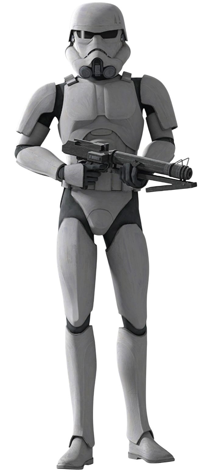 Stormtroopers were the elite soldiers of the Galactic Empire following the end of the Clone Wars. The evolution of the former soldiers of the Galactic Republic, the clone troopers, the stormtroopers wore specialized white armor and helmets and were the mainstay of the Imperial Army. Introduced as TK troopers, they were recruited from loyal citizens across the galaxy and received training from veteran Clone Commandos. Stormtroopers quickly became the symbol of Imperial might throughout the galaxy, serving to enforce the laws of the New Order.