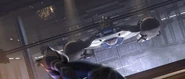 Fighting back-to-back, Ahsoka and Rex search for another escape route as the cruiser begins to break apart in the moon's atmosphere. Ahsoka cuts through the deck and drops them both into the maintenance section. Cheep and G-G continue raising and lowering the lifts to keep the clones off balance until they are discovered. Jesse has the two droids destroyed. Rex hastily searches for another ship while Ahsoka deflects the clones' attacks. The only flight-worthy ship he can find is a Y-Wing Starfighter. Rex climbs in and prepares to take off, but Ahsoka is pinned down by the clones. She tries to leap into the fighter but instead falls out of the hangar.